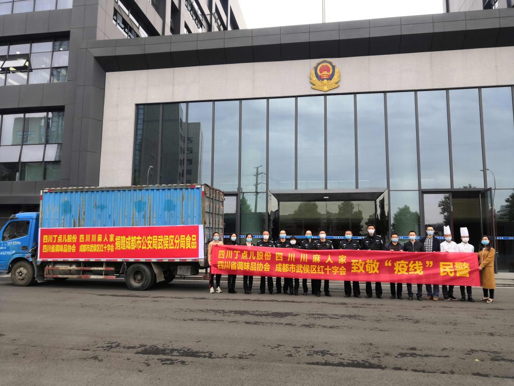 ? ? ? ? 3月27日,丁點(diǎn)兒股份積極響應(yīng)四川省調(diào)味品協(xié)會(huì)發(fā)起關(guān)于在全省調(diào)味品行業(yè)開(kāi)展共赴戰(zhàn)“疫”,“味”問(wèn)民警活動(dòng)的號(hào)召,再次通過(guò)成都市武侯區(qū)紅十字會(huì)向成都市公安局武侯區(qū)分局捐贈(zèng)600余件由子公司“四川川麻人家食品開(kāi)發(fā)有限公司”提供的川味調(diào)料。公司副總經(jīng)理龐永強(qiáng)先生、四川省調(diào)味品協(xié)會(huì)秘書(shū)長(zhǎng)王三躍先生、武侯區(qū)公安分局、武侯區(qū)紅十字會(huì)等相關(guān)領(lǐng)導(dǎo)參與了此次捐贈(zèng)活動(dòng)。