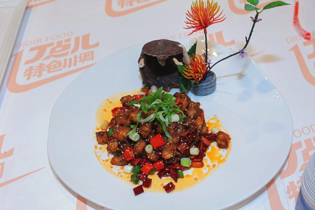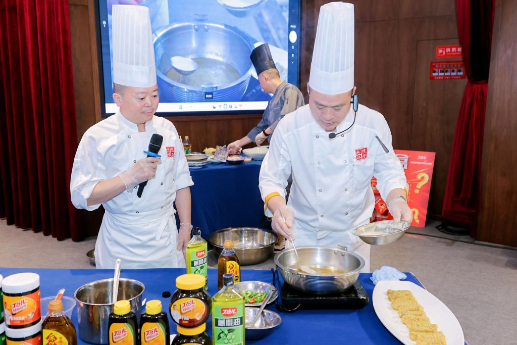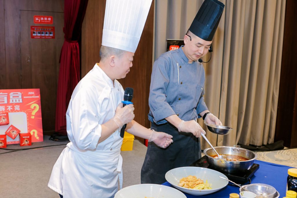 為讓嘉賓更直觀感受丁點兒產品的魅力,丁點兒菜品研發工程師應用丁點兒干鍋醬、干鍋香、泡椒醬等特色川調烹制了干鍋椒麻掌中寶、青椒金醬蝦仁等風味菜品供大家品嘗,贏得了嘉賓的一直肯定。“這道干鍋椒麻掌中寶,味道濃郁,外酥里嫩,根本吃不夠”“青椒金醬蝦仁清鮮爽口,椒麻十足,好吃!”