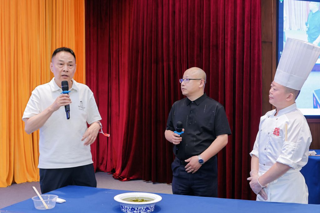 烹飪過程中,在中國烹飪大師劉全剛采訪交流下,2位總廚不僅展示了各自菜品的烹飪要點和菜品特色,還分享了自己的烹飪心得和技巧。著名烹飪大師肖見明現場品鑒點評到:”兩道作品既守住川菜魂,又開辟新思路,為傳統技藝注入現代活力,非常棒!值得我們新生代餐飲廚師學習!”