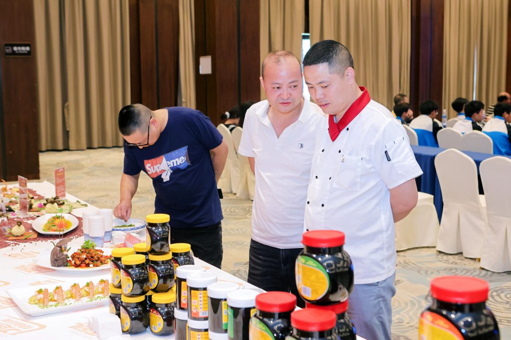 丁點兒食品產品應用展示體驗區,高品質特色川調產品陳列豐富亮眼,前來咨詢了解的嘉賓絡繹不絕。面對大家關于產品的提問,丁點兒工作人員以耐心和專業的態度一一解答,就如何更好地運用丁點兒調料來提升菜品口感給出了實用的建議,讓嘉賓對丁點兒品牌產生了更深厚的信賴與喜愛。