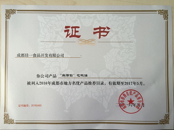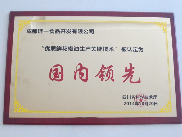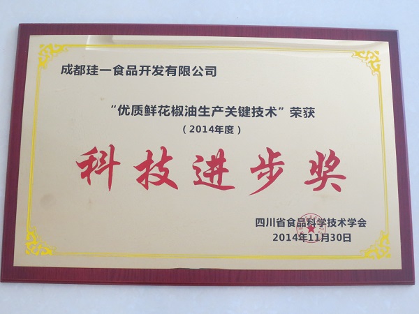 喜報!丁點兒食品“鮮花椒油去苦澀味關鍵技術”獲“技術創新獎”!
