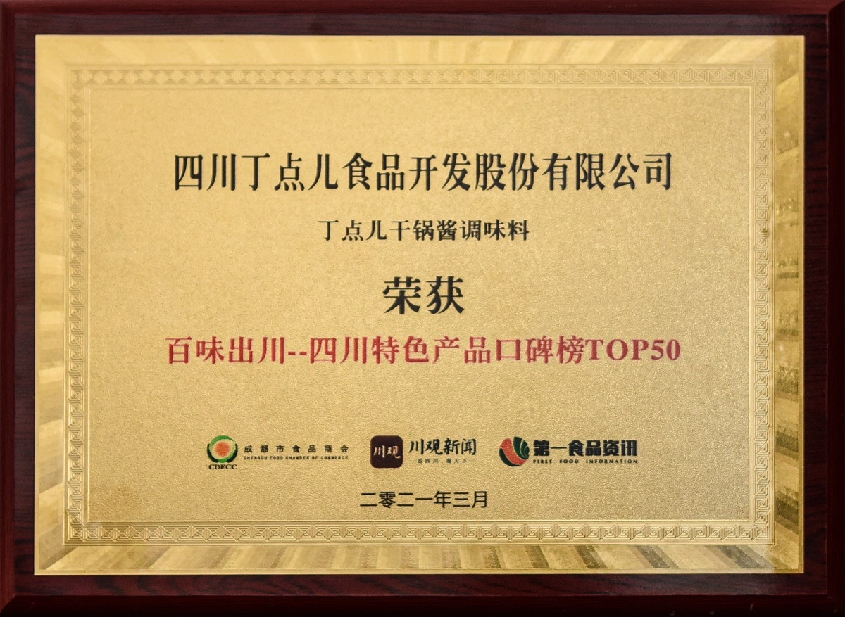 丁點(diǎn)兒干鍋醬調(diào)味料榮獲“2020百味出川·四川特色產(chǎn)品口碑獎”