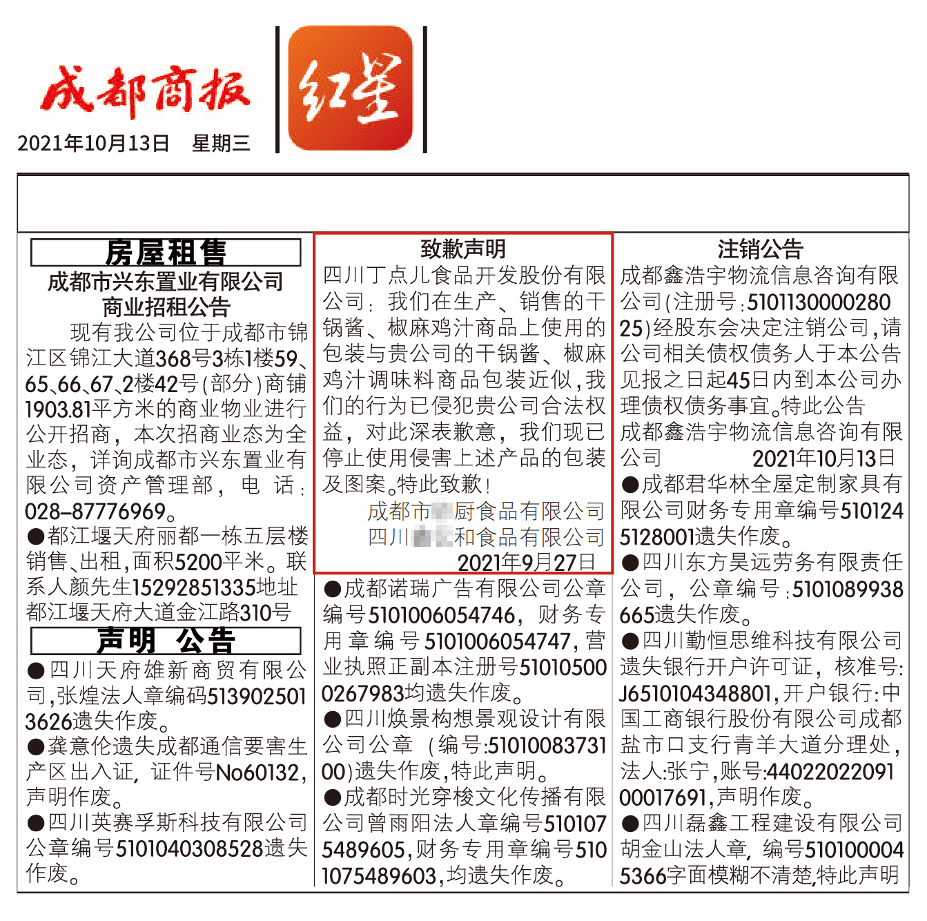 捍衛(wèi)知識產(chǎn)權(quán)和消費(fèi)者利益,丁點(diǎn)兒股份干鍋醬、椒麻雞汁維權(quán)案勝訴